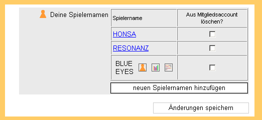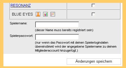 4. Dann trägst Du in die beiden Felder Deinen Spielernamen und Dein dazugehöriges Spielerpasswort ein und klickst auf Änderungen speichern.